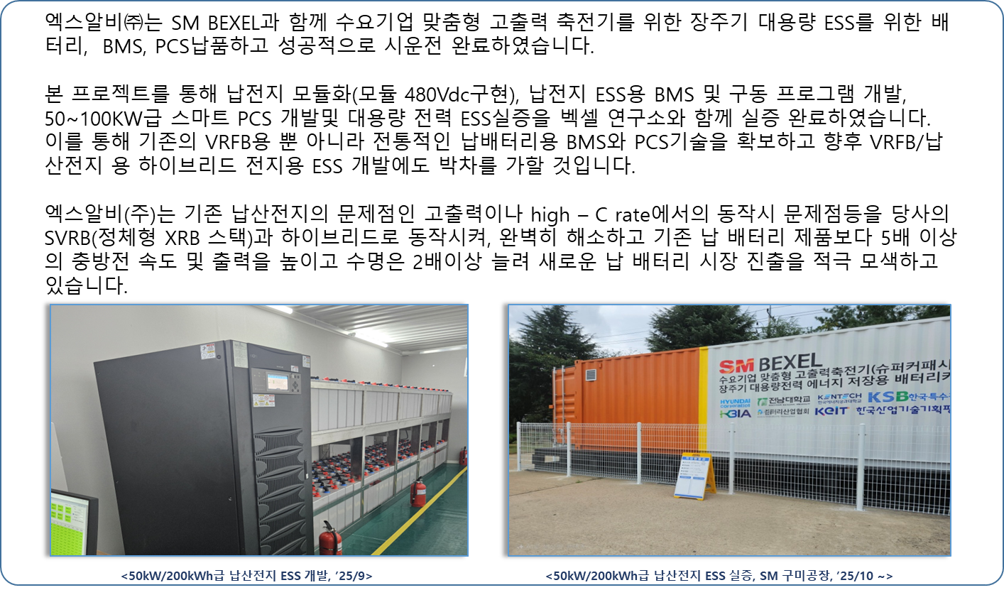 엑스알비(주) 50KW/200KWh 급 납배터리용 ESS 개발 및 납품